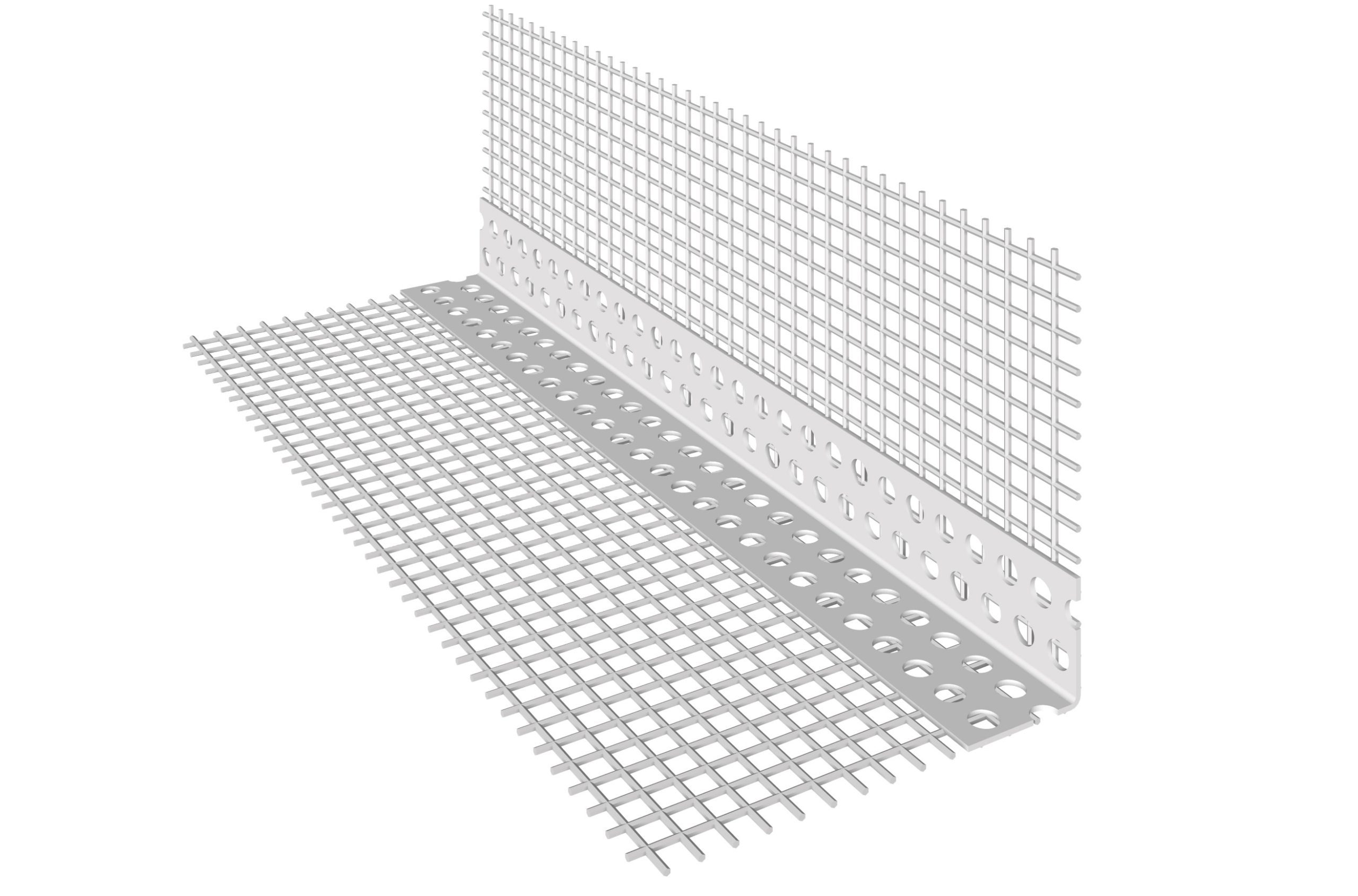 Cantonera de PVC con malla de fibra de vidrio pegada.